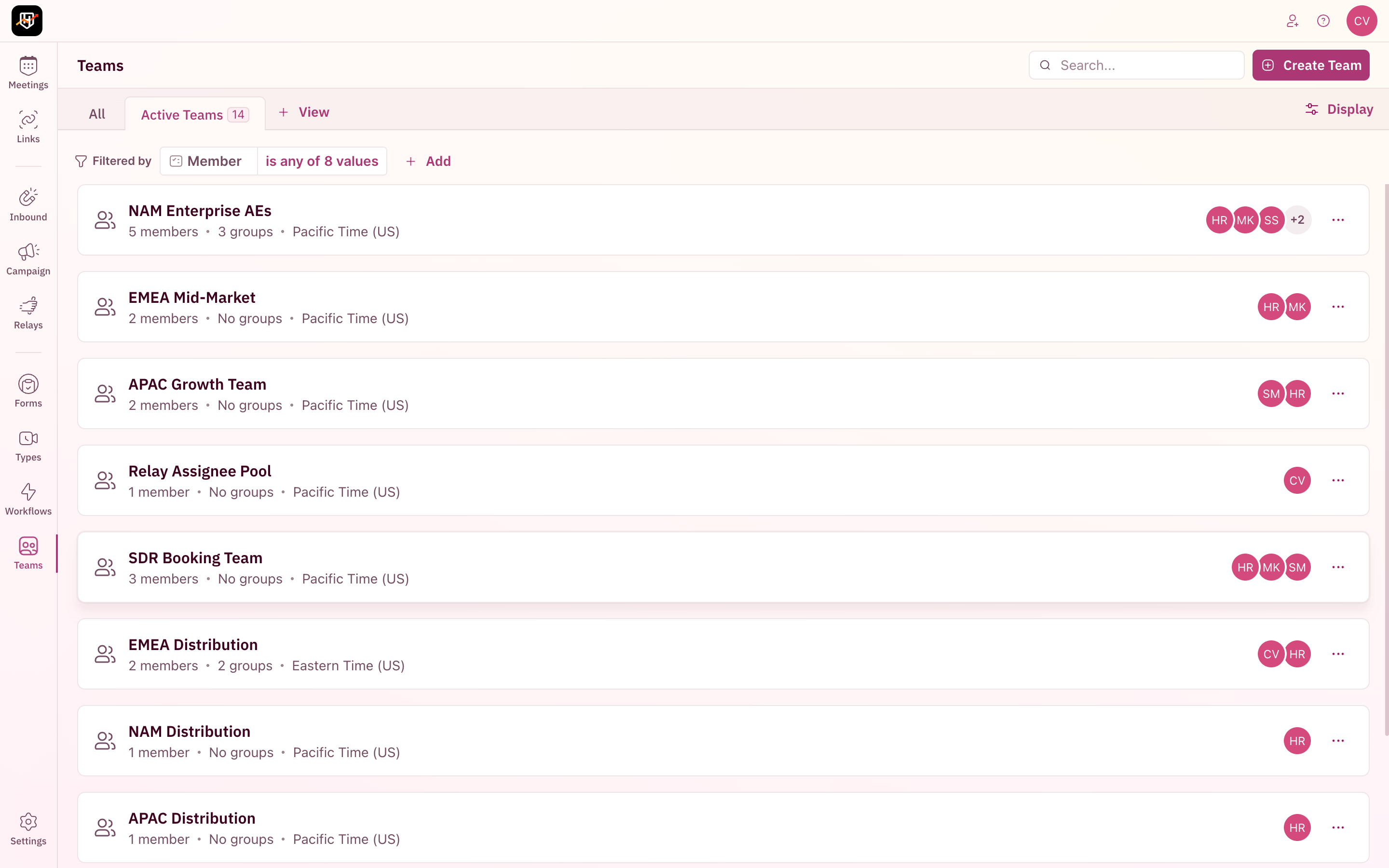 | Distribution Pods | Distribution, Assign CRM Owner, Team, Meeting Type, Member, Handoff Router, Created At |